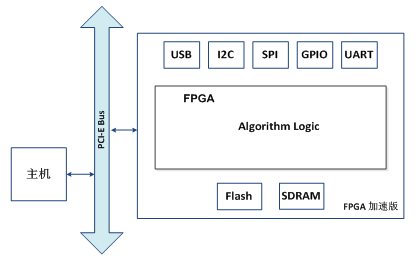 系统为集成PFGAFlashSDRAM及各种通用接口的加速板卡。可通过系统总线与主机相连,实现与主机间的控制或数据传输;可通过多种接口与其它系统或设备相连,完成数据信息/控制信息/处理结果的交互。FPGA完成核心算法的硬件加速,核心算法可根据用户要求进行定制实现,FPGA加速版可根据用户对接口的要求进行增减定制。现已实现多种加解密算法、数字信号处理算法、数据挖掘算法、工业控制算法等常用算法的硬件逻辑及多种通用接口的硬件驱动逻辑。