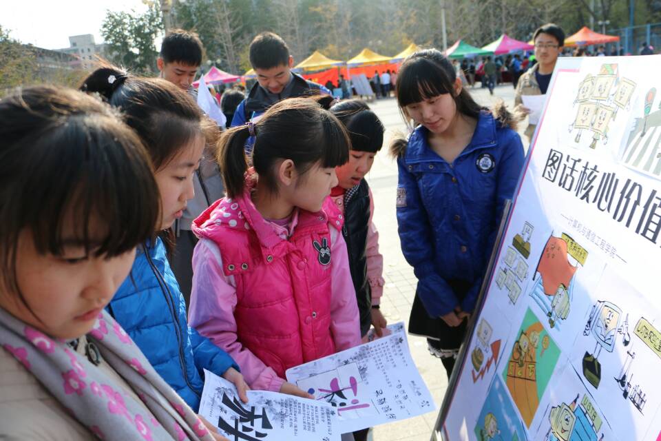 11月16日北京科技大学第二届科技游园会上,一个可爱的电脑人卡通形象很受欢迎,“为电脑人正能量点赞”,“看卡通人行为猜价值观准则”等活动引导了路过师生的关注和参与。这个电脑人是学院学生党员发挥专业所学,将信息技术运用至党建工作中的成果之一。今年10月,由学生党员组建团队,设计出名为“一点”的计通电脑人卡通人形象,一经推出就抓住了学院师生的眼球。以电脑人为主人公描绘的“‘一点计通’,图话社会主义核心价值观”的主题漫画在微信朋友圈和QQ空间里也受到了师生们积极关注和热情转发。