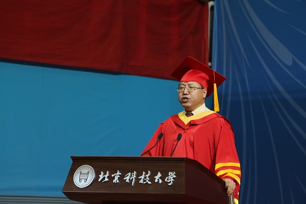 典礼上,校长张欣欣发表了题为《相离莫相忘 且行且珍惜》的致词,代表全校老师向毕业生表达热烈的祝贺。他与同学们一同回顾了近几年大家共同见证的国家的发展和学校的进步,民族复兴的“中国梦”和生机迸发的“北科梦”都在起航远行。同时,他也带领同学们回顾了大家用多年的砥砺奋进所铸就的激情燃烧的岁月,同学们的“青春梦”亦在勃发!张欣欣深情地与同学们一起共勉“三个珍惜”:一是要珍惜内心年轻的力量。要保持一颗年轻的心,不断接纳美好、希望、欢乐、勇气;要树立远大的理想和抱负,时刻敢为人先、永不言退、积极进取,无愧无悔于自己的人生!二是要珍惜身边的每一份善意。学会爱人,坚持爱人,与善同行,点赞每一份爱心,转发每一份善意!三是要珍惜未来的每一次挫折。要敢于正视挫折,珍视挫折的经验,使每一次挫折成为走向成功的阶梯!
