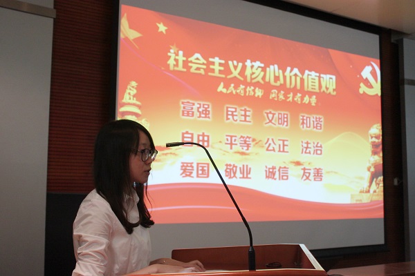 此次理论学习的主题是“社会主义核心价值观与个人价值准则”。活动由“习近平总书记五四讲话精神解读动画”引入话题,然后通信1202班靳京、信安1201班金佩两名学生党员进行了“人民有信仰,国家才有力量:论社会主义核心价值观内容内涵”的主旨宣讲。他们从国家、社会、个人三个层面分别解读了社会主义核心价值观“富强、民主、文明、和谐,自由、平等、公正、法治,爱国、敬业、诚信、友善”24字内涵。
