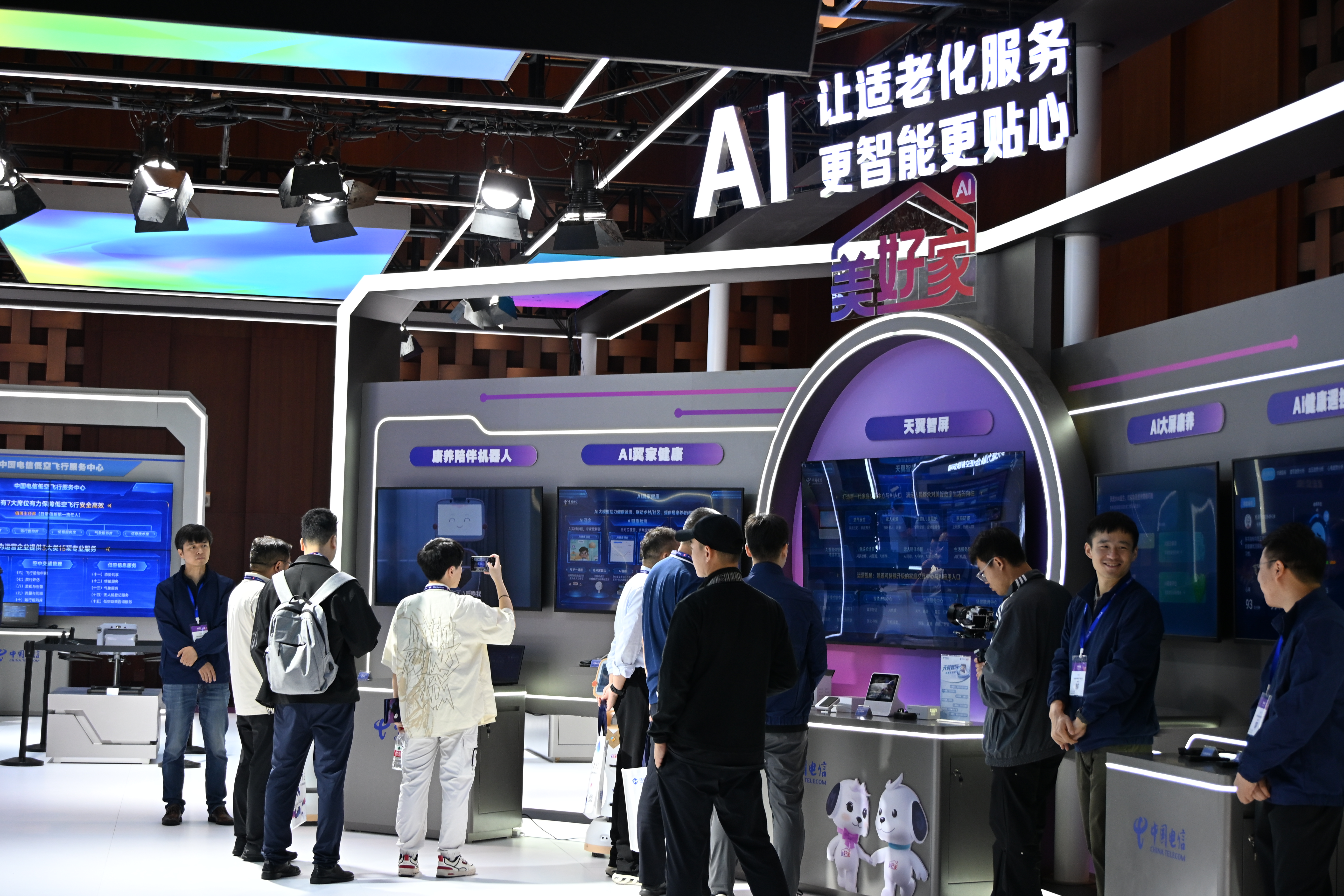在展会现场,通过5G-A、6G等新一代网络技术的实时演示,同学们切身感受到通信速率与连接稳定性的跨越式提升;卫星互联网终端的互动操作,让“空天地”一体化通信网络从课本理论转化为可触可感的实体;在中国电信等头部企业展台,低空飞行作业平台在城市应急救援中的模拟应用、康养陪伴机器人的智能交互服务等场景,生动诠释了通信技术在民生服务、应急保障等领域的深度落地成果。通过现场讲解和互动操作,同学们进一步巩固了理论知识,感受到科技赋能生活的巨大潜力。展会期间,同学们积极参与展商交流,聆听行业报告,进一步明晰了个人学术科研与职业发展方向。