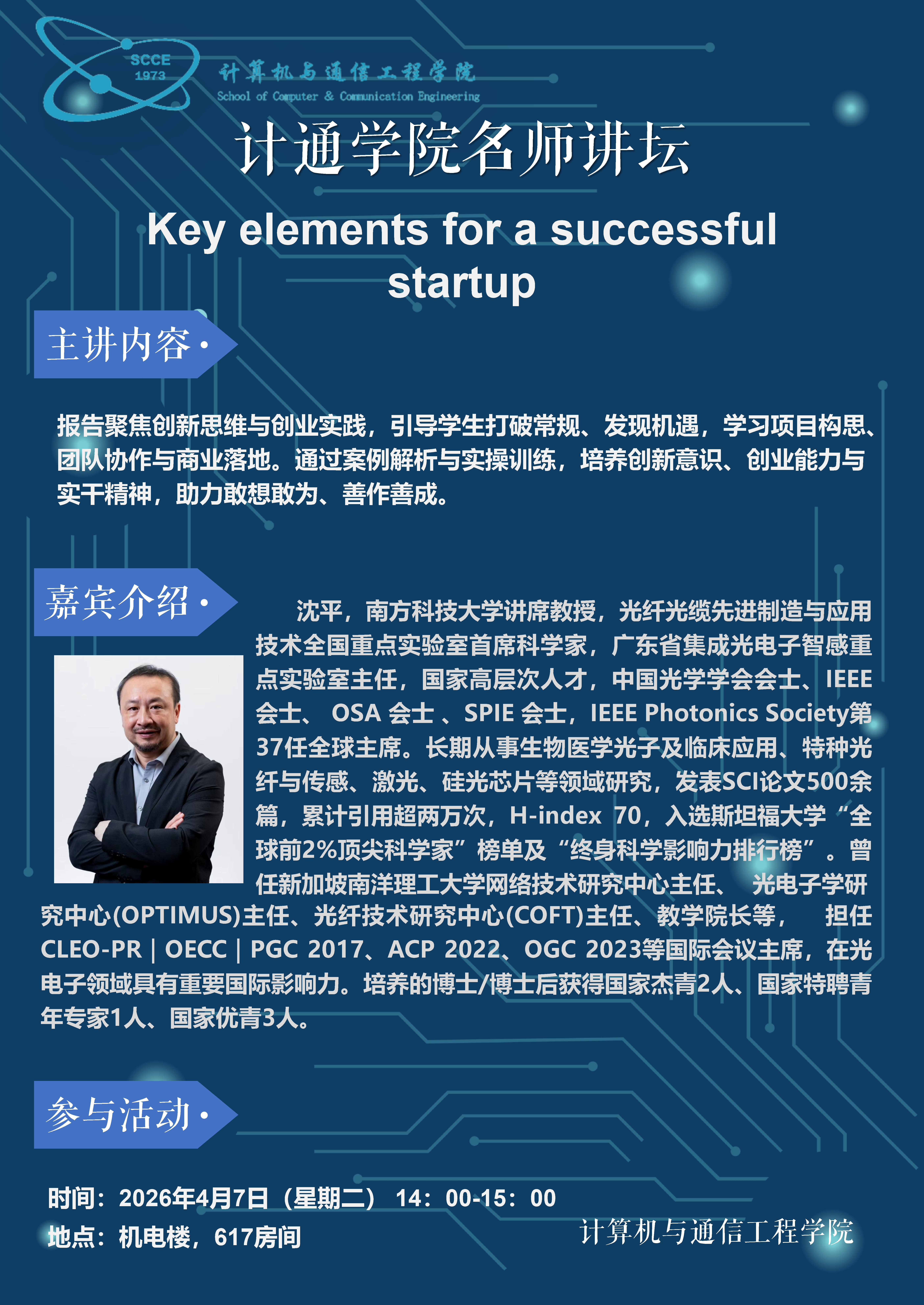 计通学院名师讲坛:Key elements for a successful startup