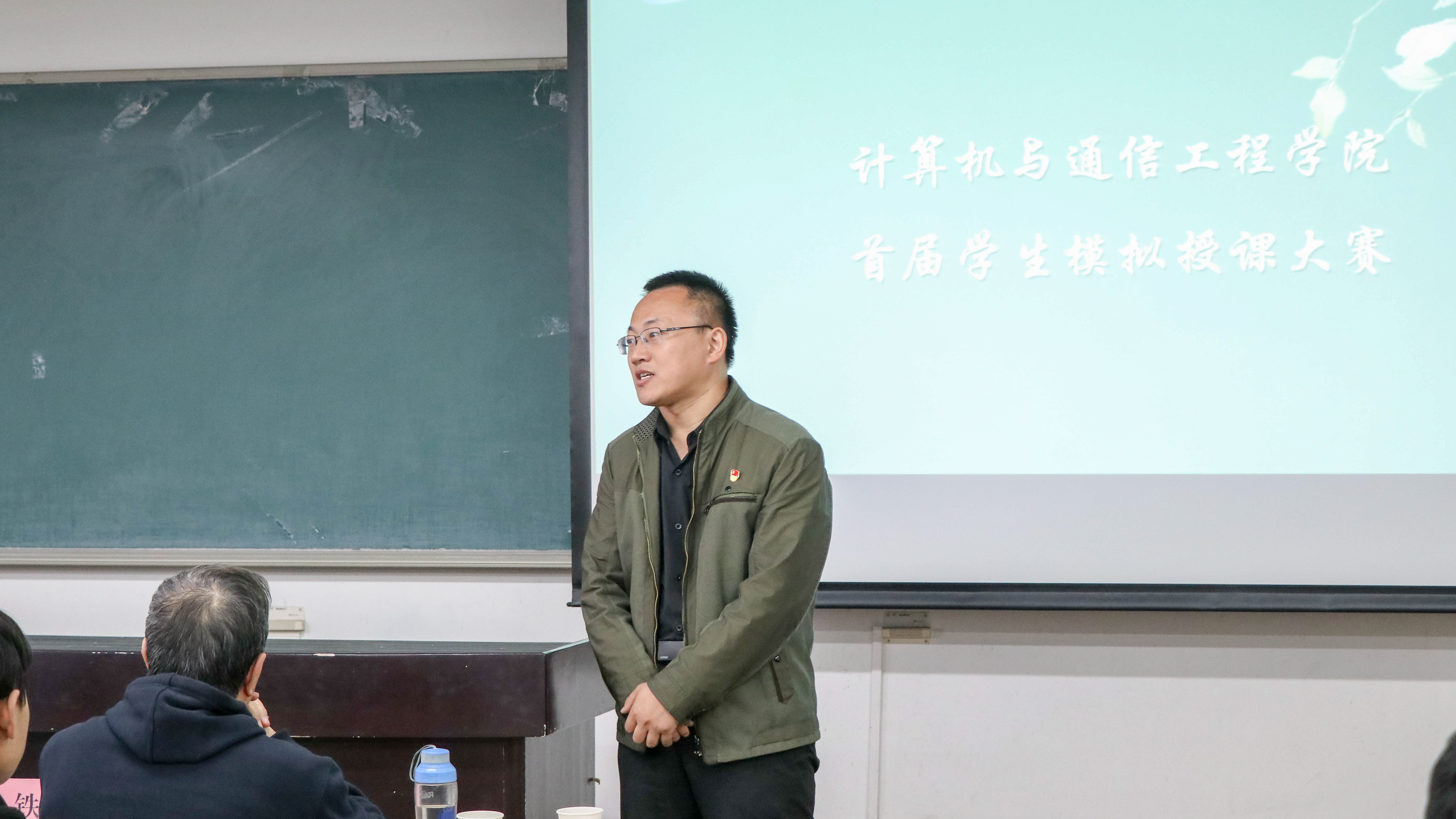 首届学生模拟授课大赛于4月3日、4日,在机电楼617、721教室拉开帷幕。本次大赛邀请到了计通学院关工委委员孙铁、郭俊,计算机1704班班主任姚宣霞,通信1703班班主任周娴,通信1704班班主任孙奇福等老师作为教师评委。计通学院17级各班的学习委员作为学生评委一同参与了比赛评审。