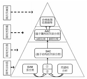 提出蛋白质二级结构智能预测系统模型------复合金字塔模型。其中KAAPRO方法以数据挖掘(知识发现)为主体,采用基于KDD*过程模型Maradbcm算法以及关联规则分类D-CBA方法。KAAPRO方法所取得关联规则在一定程度上揭示了氨基酸物化属性对蛋白质二级结构的影响关系,从而提高了预测的精度。其中Maradbcm算法挖掘意外规则的特性对纯度较高的α蛋白质库与β蛋白质库进行关联规则的挖掘,由此获得的挖掘结果是精化的规则。D-CBA关联分类方法使用可信度与支持度的测度作为一个复合型度量来进行蛋白质关联分类。该项研究取得生物信息学领域国际性难题------蛋白质2级结构预测精度的国际领先地位,通过开放服务器产生重要国际影响,并得国际著名学府与学者的高度评价与合作。