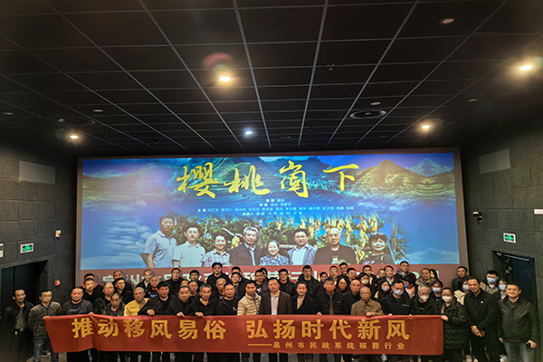 组织民政系统殡葬行业干部职工代表集中观看殡葬改革电影《樱桃崮下》。