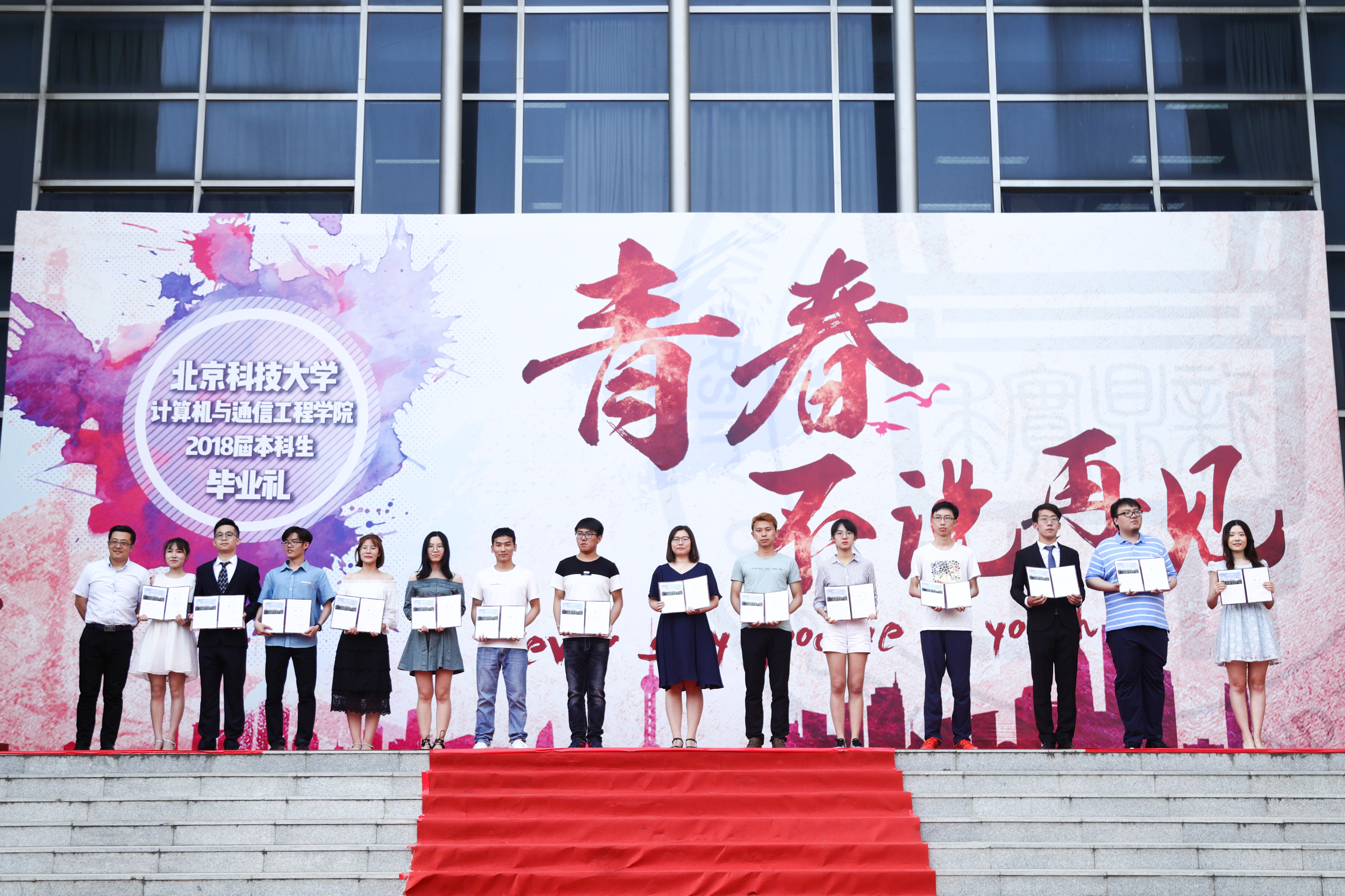 毕业礼在雄壮的国歌声中拉开帷幕。