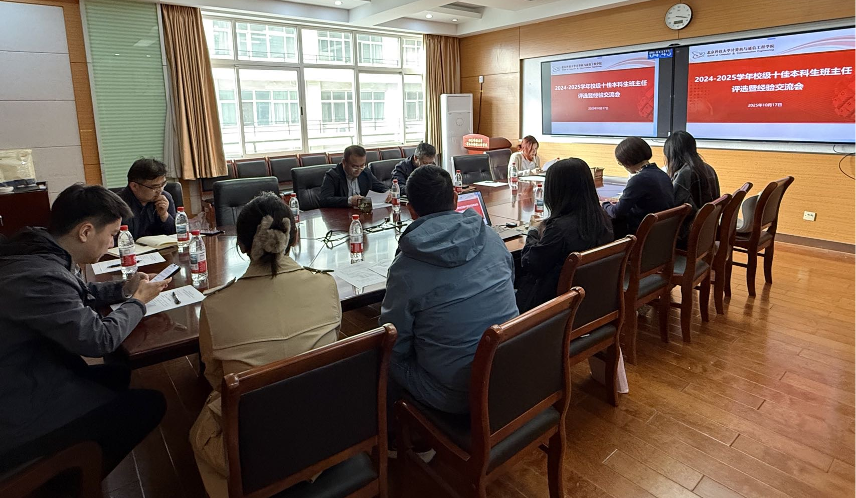 学院对2024-2025年4个年级51个班级的51名班主任开展考核。经过各专业所推荐,共有6人申报参评优秀本科生班主任。各位参评老师从班风学风建设、学生成长成才、发展规划指导等方面依次展开交流,分享了自己担任班主任以来的体会感悟与经验做法。经过参会教师评委投票,张敏、范茜莹和陈丹阳3名教师获推北京科技大学十佳班主任候选人,其他3名班主任候选人获院级优秀本科生班主任称号。