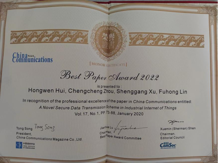 喜报!祝贺日本色情 林福宏教授团队论文获2022年《中国通信》最佳论文奖!